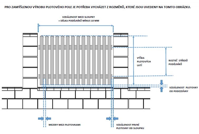 Plastové ploty nabízíme v mnoha tvarových a barevných provedeních. Pro sestavení jednotlivých plotových polí je potřeba si ujasnit rozměry a vzdálenosti, které jsou popsány na přiloženém obrázku.